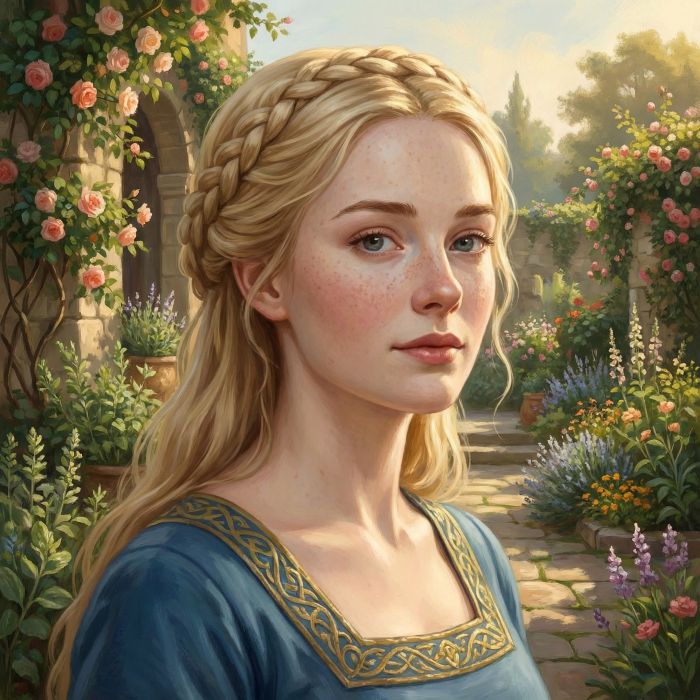 Dass sie keine Kriegerin ist, sieht man der Adelsdame auf den ersten Blick an. Nicht, weil sie mit ihren knapp 170 Halbfingern alles andere als groß ist, denn das sagt rein gar nichts über die Kampfeskraft aus, wie ein jeder Zwerg gern bezeugen wird. Vielmehr ist die Dûrrnwangin noch dazu sehr schmal --- um nicht zu sagen: zart --- gebaut. Die Hände haben niemals schwere Arbeit verrichten müssen und Arme und Beine sind nicht gestählt, wie sie es sein müssten, wenn die mit den kämpfenden Weidener Maiden mithalten wollte.