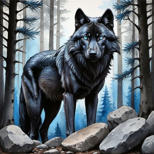 Bevor er sein eigentliches Ziel erreichen sollte, stand ihm noch eine weitere Begegnung bevor. Faelanthîr kannte den schwarzen Wolf mit dem Stockmaß eines kleinen Pferdes. Der Warg war von eindrucksvollem Wuchs, das Fell schwarz glänzend, gleich feinster Seide, der Körper schlank und kräftig, die Zähne weiß wie Schnee und die Augen blau wie der Himmel über ihnen. Er musterte den Neuankömmling mit einem Blick, hinter welchem eindeutig mehr schlummerte als der Geist eines Tieres.