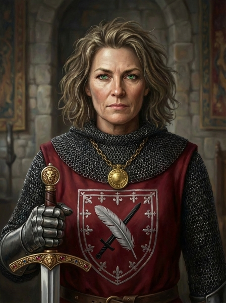 Kurzprofil: Unerschrockene Kriegschronistin des Rhodensteins, kompetente Kämpferin und Kampftaktikerin, temperamentvolle Baronsgemahlin