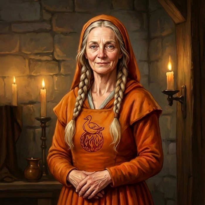 | Kurzprofil: | Gutmütige, aber erzkonservative Travia-Geweihte |