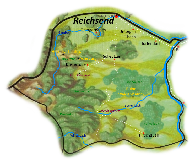 | Orte: | Orkenwall (100), Reichsend (550), Scheutzen (200), Torfendorf (120), Wolfspfort (210), Düsterrode |