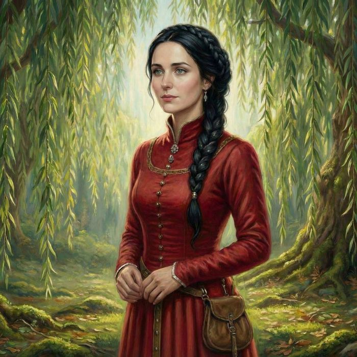 Weidenhag als Haushofmeisterin, die viel auf die Fähigkeiten der stillen, unstet wirkenden Inja gibt und damit die erste Person in ihrem Leben ist, die der jungen Frau Achtung entgegenbrachte.