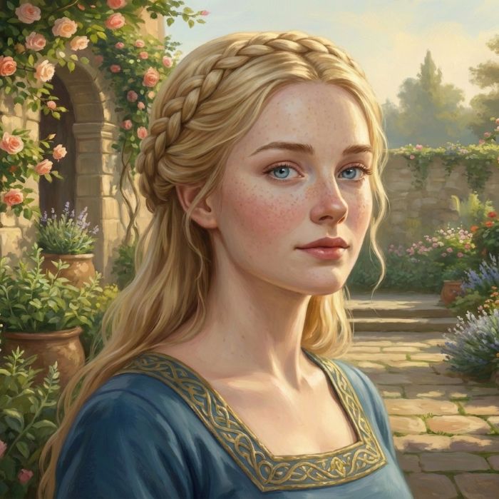 Dass sie keine Kriegerin ist, sieht man der Adelsdame auf den ersten Blick an. Nicht, weil sie mit ihren knapp 170 Halbfingern alles andere als groß ist, denn das sagt rein gar nichts über die Kampfeskraft aus, wie ein jeder Zwerg gern bezeugen wird. Vielmehr ist die Dûrrnwangin noch dazu sehr schmal --- um nicht zu sagen: zart --- gebaut. Die Hände haben niemals schwere Arbeit verrichten müssen und Arme und Beine sind nicht gestählt, wie sie es sein müssten, wenn die mit den kämpfenden Weidener Maiden mithalten wollte.