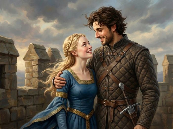 Travine von Weidenhag (*989 BF, Hochgeweihte der Travia) & Jarlan von Gernbach (*990 BF, Ritter)