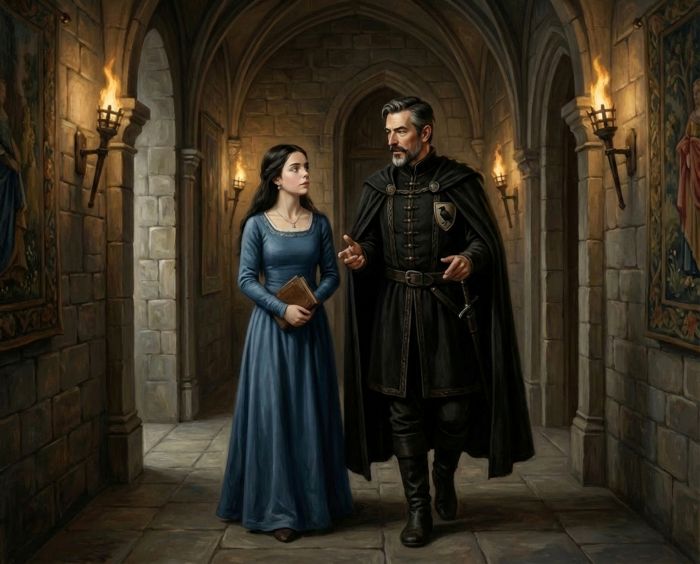 die junge Gwidûhenna und ihr Lehrmeister, seine kaiserliche Hoheit Barnhelm von Rabenmund, Graf von Ochsenwasser,