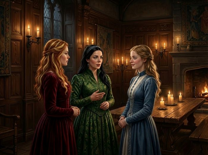 Gwidûhenna mit ihren beiden Hofdamen Alina und Dÿlga, neuzeitlich