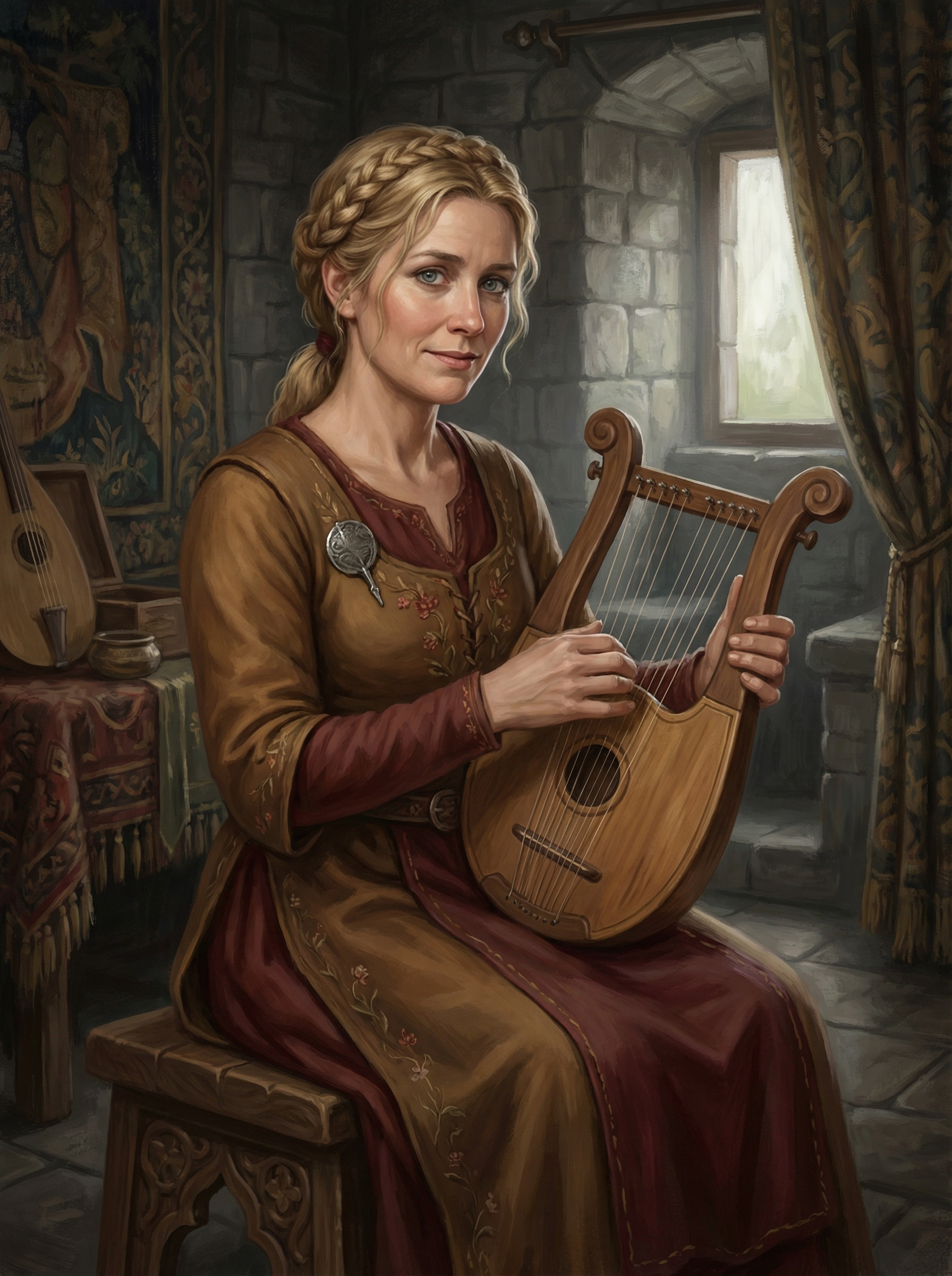 Auch wenn sie ihre Auftritte genießt, meidet Hedwina ansonsten den Trubel. Am liebsten sitzt sie mit ihrer Leier an einem ruhigen Ort und vertieft sich in ein Lied, das sie noch erforschen möchte. Musik ist für sie nicht reine Unterhaltung, sondern tiefster Ausdruck – eine stille, aber kraftvolle Verbindung zwischen Herz und Welt.